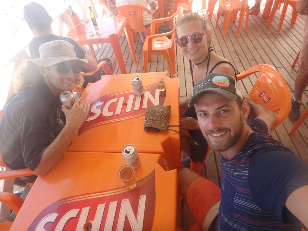 Beers with our travel companion and friend, Liam
