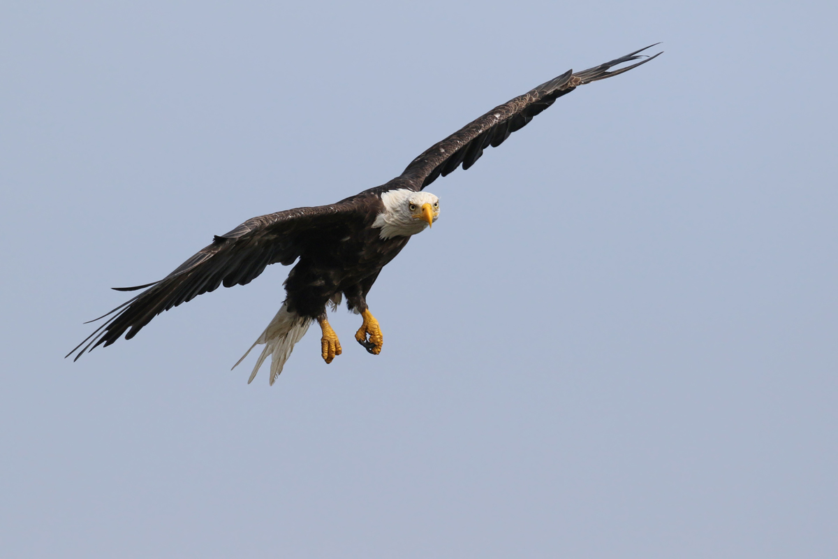 Characterized by the brown body and white head and tail, bald eagles have a wingspan of over 7 feet (2.1 meters). It’s hard to imagine just how grand that is until you see it in person, but it is a sight to behold I promise!