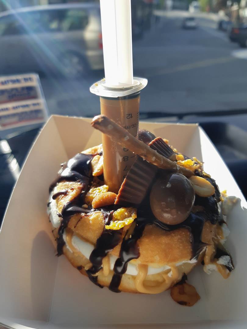 One, in particular, is the Reese’s doughnut. Topped with Reese’s chocolates, peanuts, chocolate sauce, and a syringe filled with salted caramel (ask for the syringe to be added on) this doughnut is tasty.