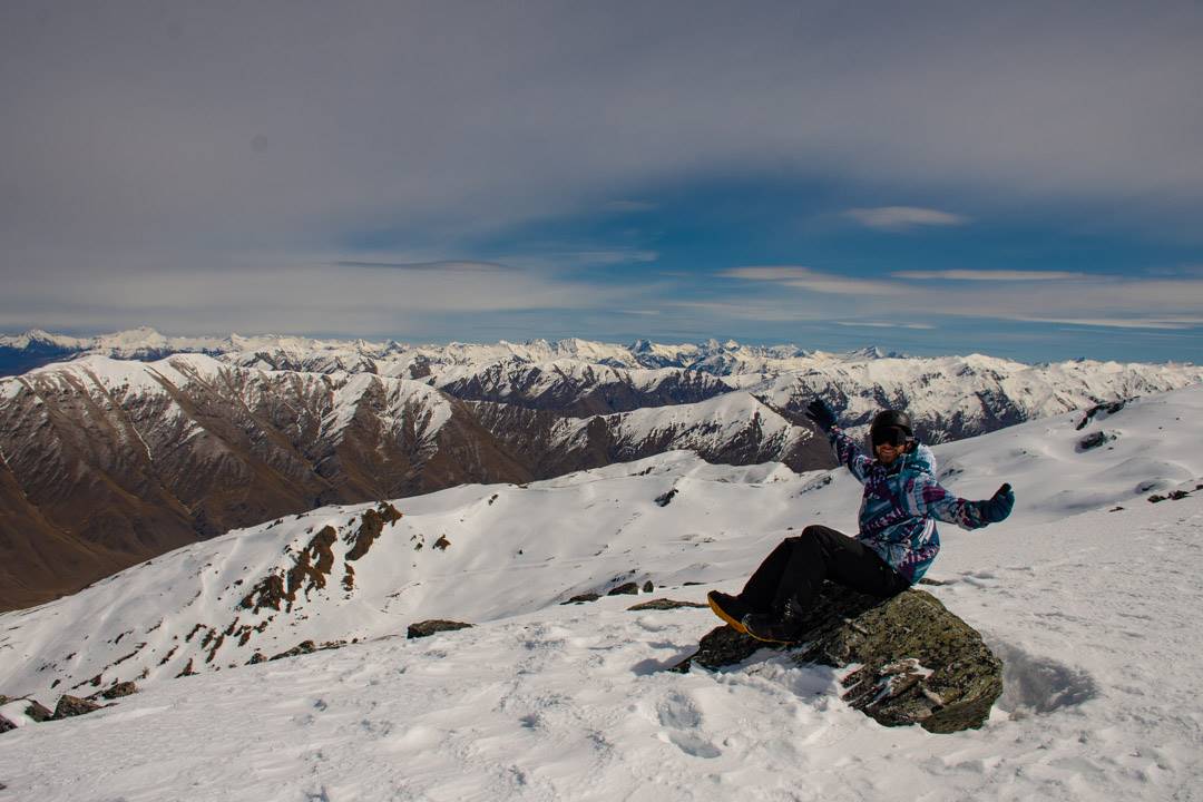 At the top of the “Mcdougall’s” chairlift, there was a sign point pointing to a viewpoint. I just had to check it out! So we left my skis and Dan’s snowboard and went for a little walk. From the top, we had an amazing view of the white Southern Alps!