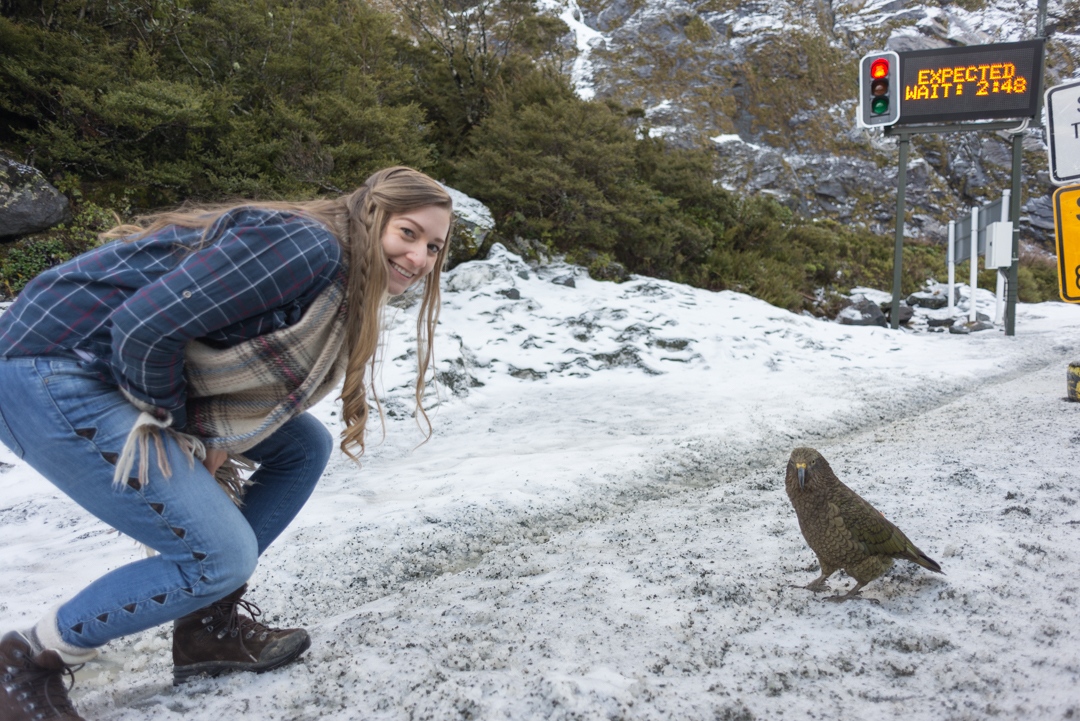 Ok, so this isn’t technically a “stop” but Keas [key-uh] are my favorites! Keas are everywhere along the drive from Te Anau to Milford Sound. These cute birds waddle when they walk and don’t seem to be frightened of people at all.