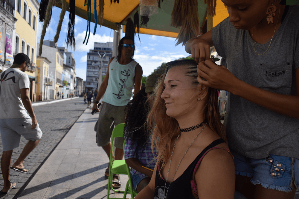 Getting into the culture and getting my hair braided in Salvador!