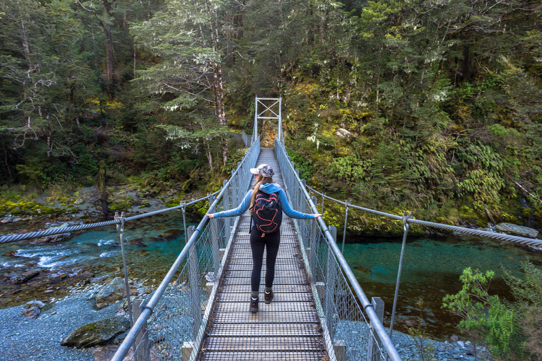 Highlights along this section include the turquoise water of the Routeburn River, Bridal Veil Falls, views of the Southern Alps, and thick untouched forest. Most of the trail in this section is shaded and very well maintained.