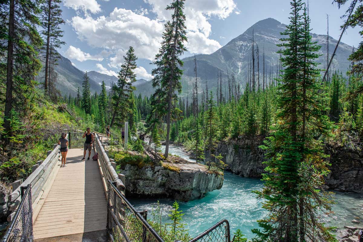 Marble Canyon is one of the best Kootenay National Park attractions because it’s easy to get to and absolutely spectacular to see. Park in the Marble Canyon parking lot right off the highway and start your walk along the bright, blue waters of Tokumm Creek.