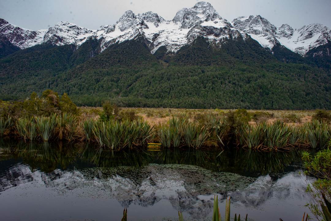 After another 2 hours of driving through Te Anau and into Fiordland National Park, you will drive by (on your left) Mirror Lakes.